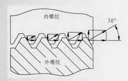 DTFLOCK螺母在內(nèi)螺紋的牙底處有一個(gè)30°的楔形斜面,當(dāng)螺栓、螺母擰緊時(shí),螺栓的牙尖就緊緊地頂在螺母的楔形斜面上,從而產(chǎn)生了很大的鎖緊力。由于牙形的角度改變,使施加在螺紋間接觸所產(chǎn)生的法向力與螺栓軸成60°角(見圖2),而不是像普通螺紋那樣的30°角,DTFLOCK螺紋法向壓力遠(yuǎn)遠(yuǎn)大于扣緊壓力,因此,所產(chǎn)生的防松摩擦力也就必然大大增加了。